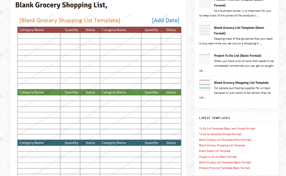Grocery Record Template Absolutely free Printable Blank Procuring Towards Do