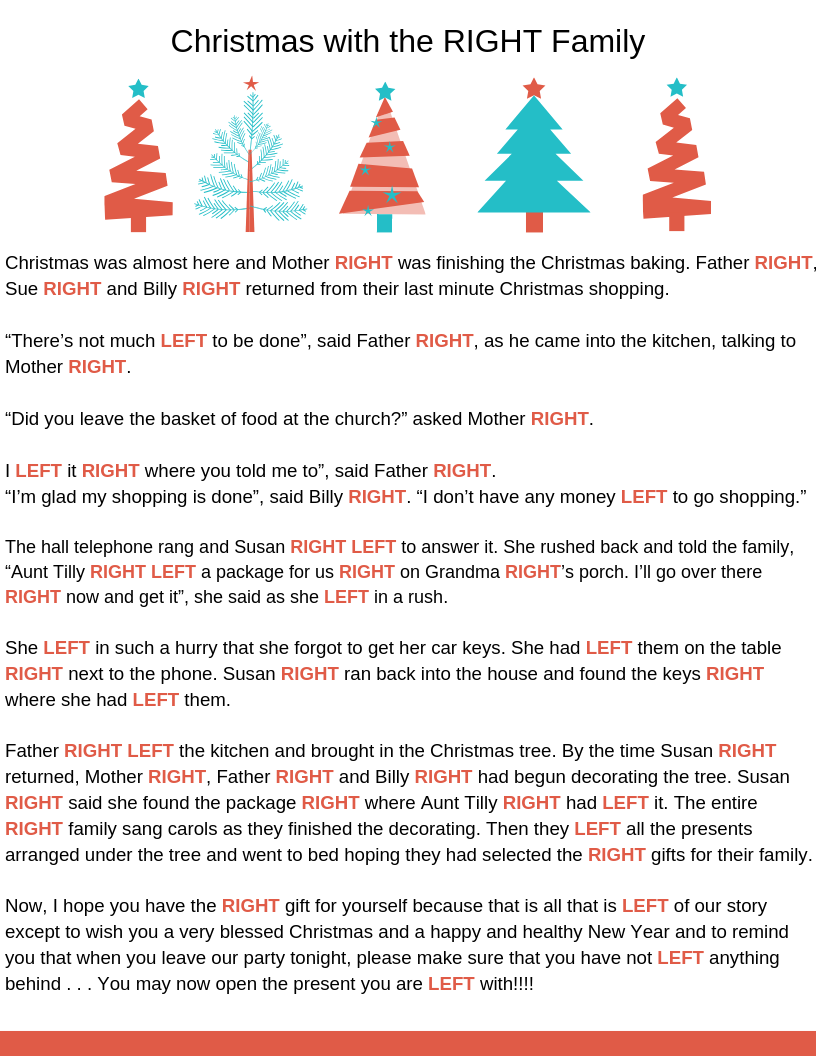 Free of charge printable Xmas tale for the still left straight sport. Simply click below in the direction of down load the Still left Specifically Xmas tale. It prints out upon 2 sheets of 8.5×11 paper. All the “rights” are within just pink and all the “lefts” are inside of inexperienced in direction of generate it less complicated for whoever’s studying in the direction of crank out of course the community is becoming trapped up.